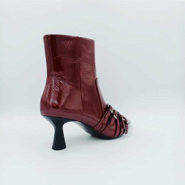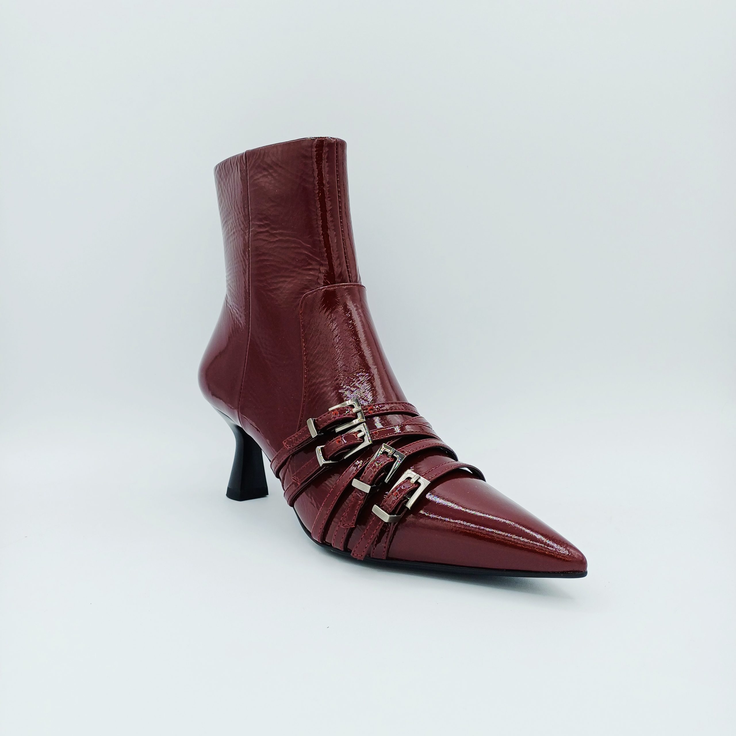 Botín con tacón bajo y hebillas en empeine color vino de marca Bruno Premi