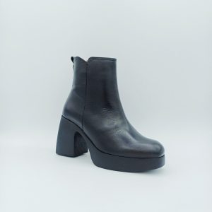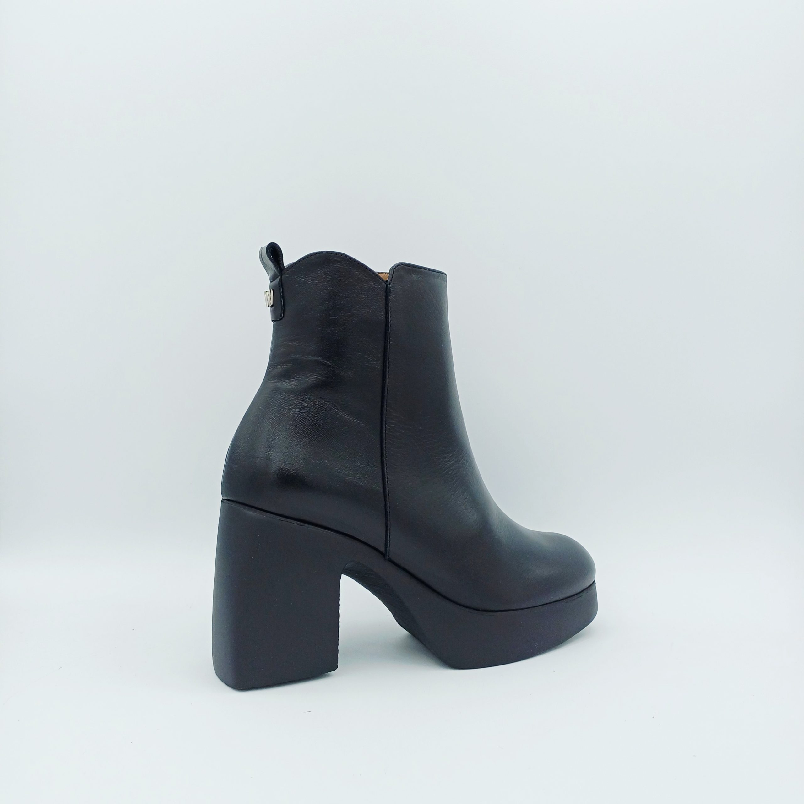 Botín sport en piel negra con tacón ancho y altura media con punta redonda y plataforma de la marca WONDERS.