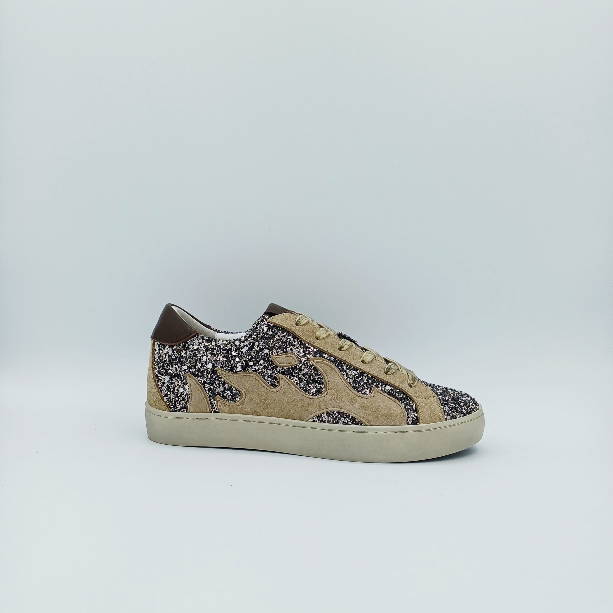 Sneaker en tonos oscuros y decoración y detalles en tonos cuero de la marca GAMIN.
