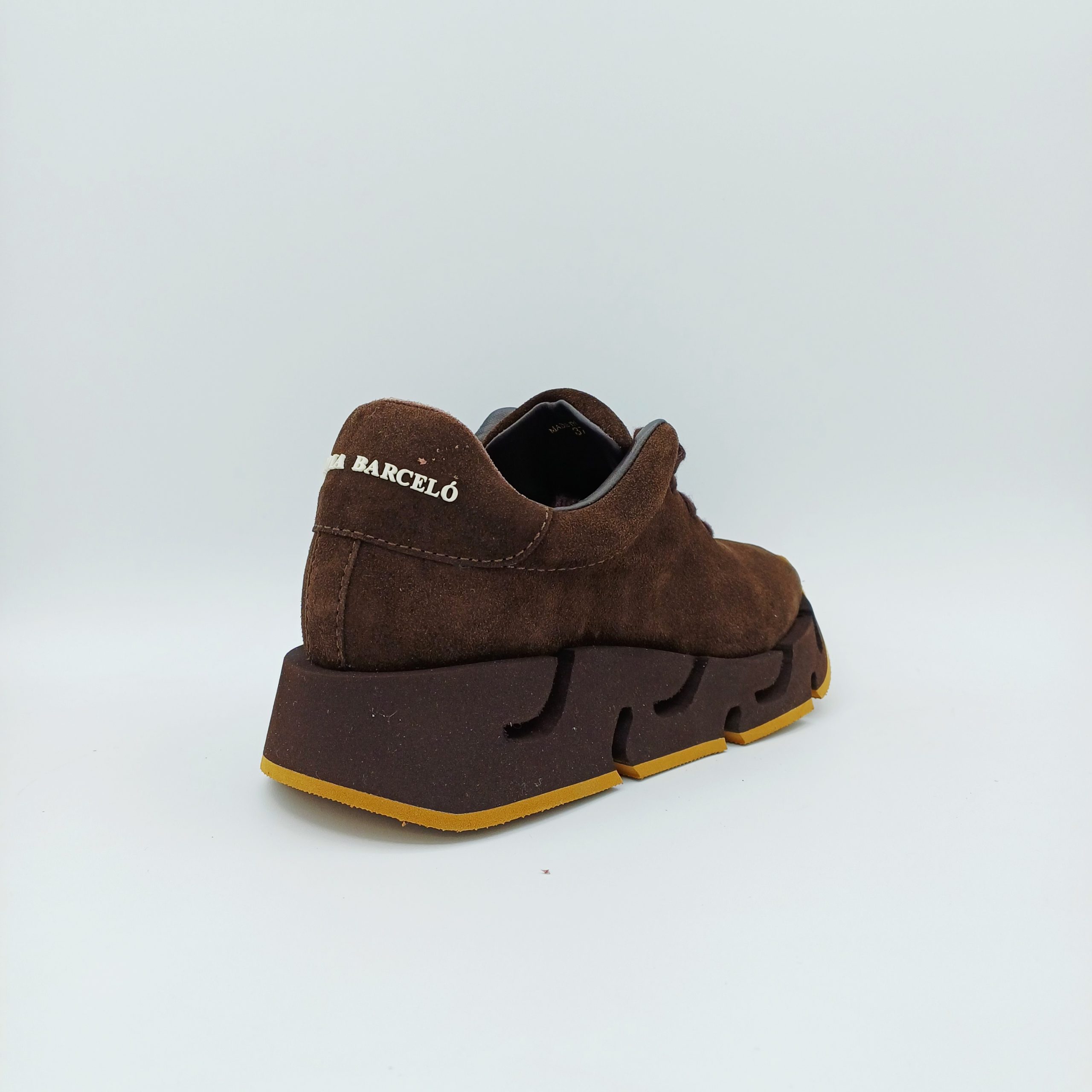 Deportiva marca PALOMA BARCELÓ especialmente cómoda en ante color marrón chocolate.