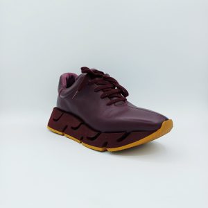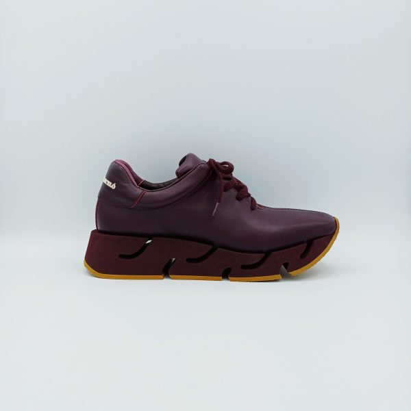Deportiva PALOMA BARCELÓ especialmente cómoda en piel color burdeos.