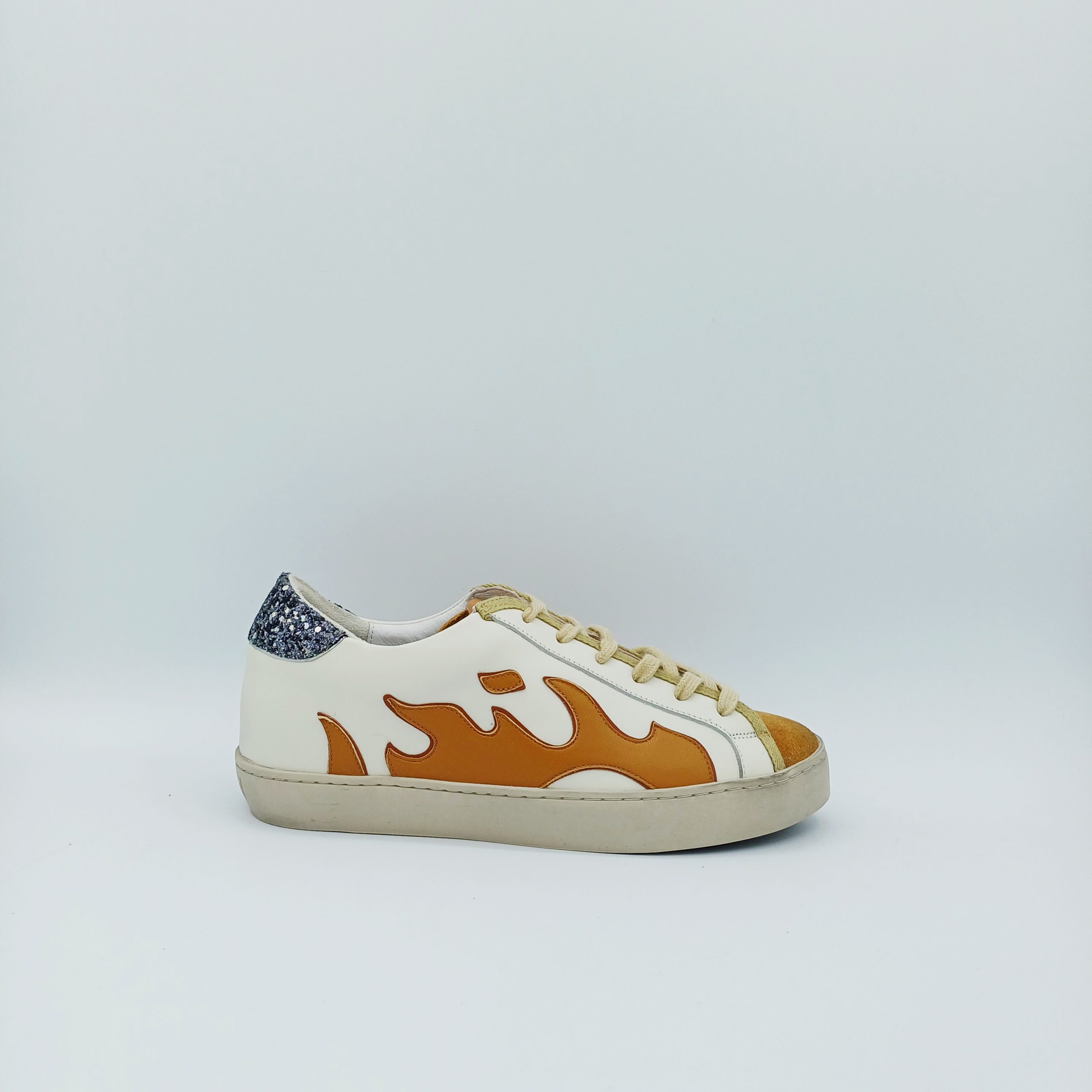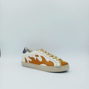 Sneaker de la marca GAMIN con decoración y detalles en tonos ocres