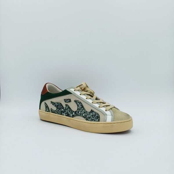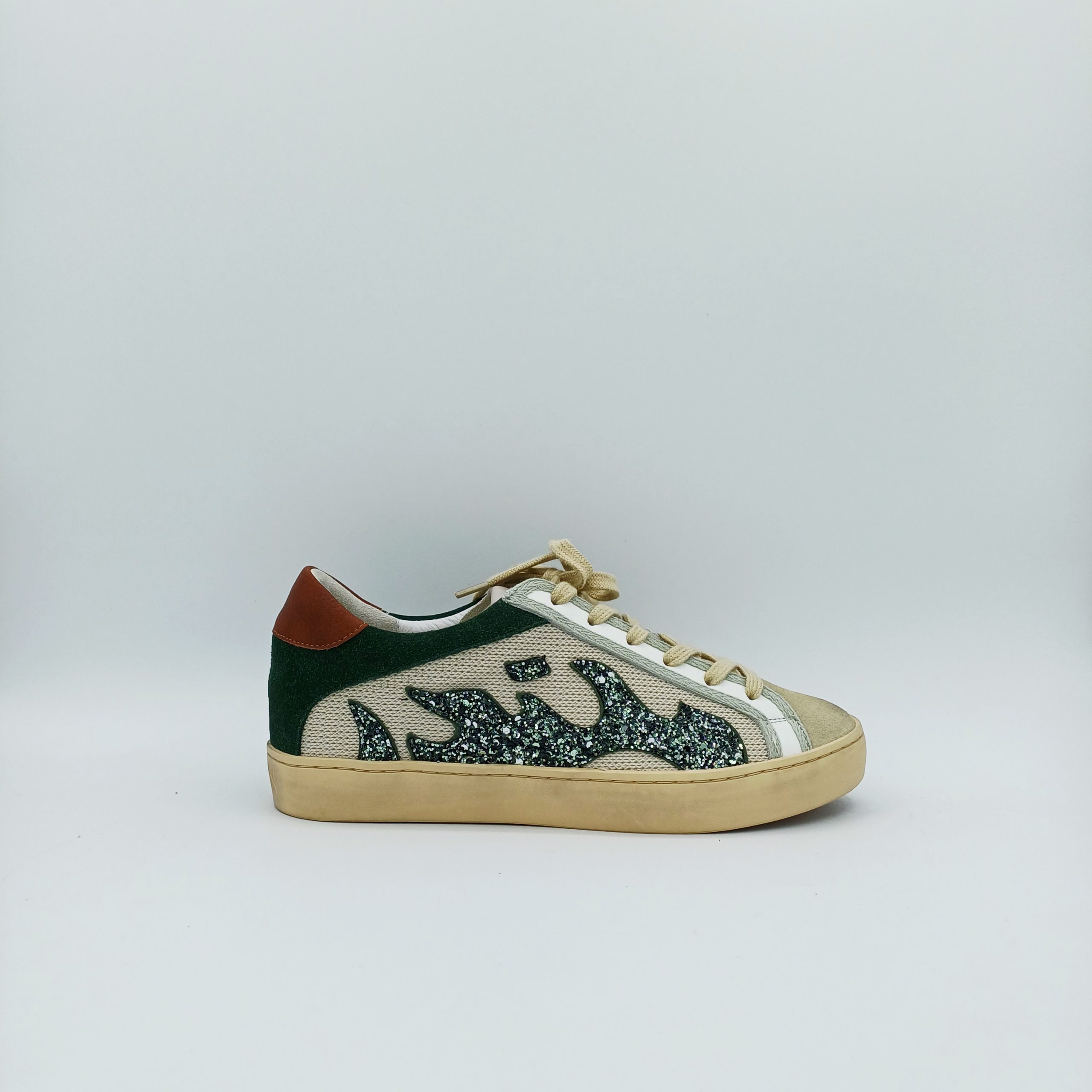 Sneaker con decoración y detalles en tonos verde y verde agua de la marca GAMIN