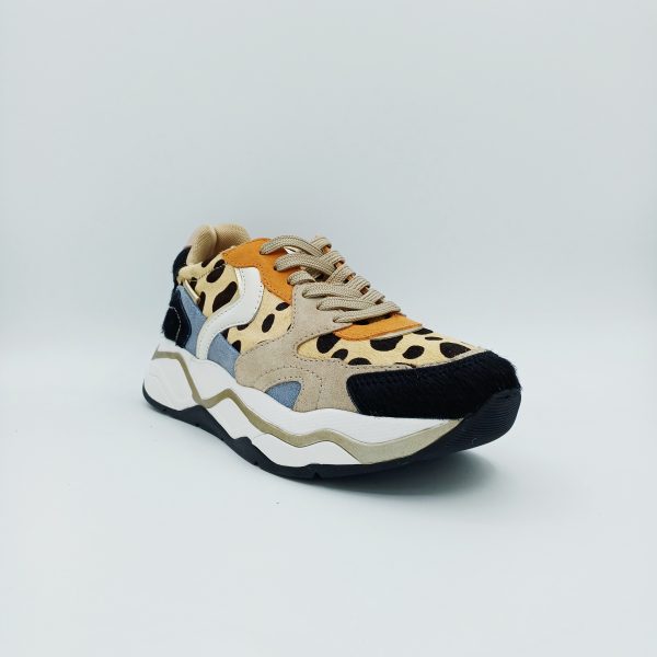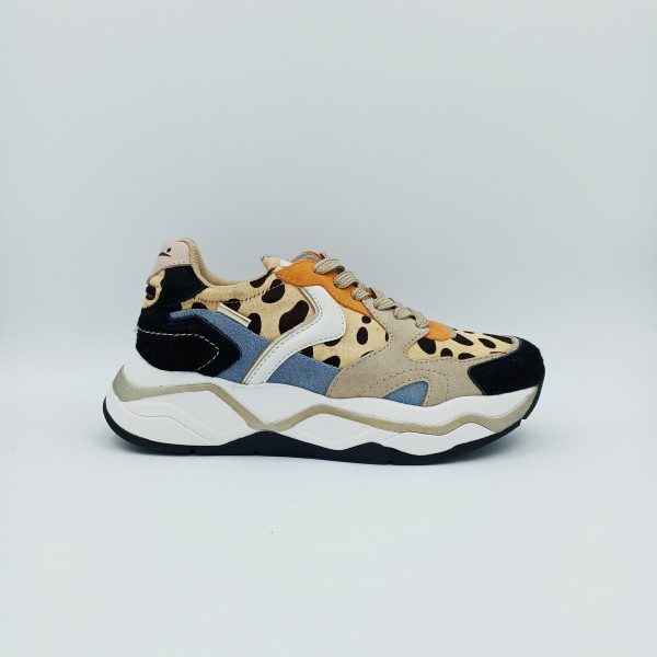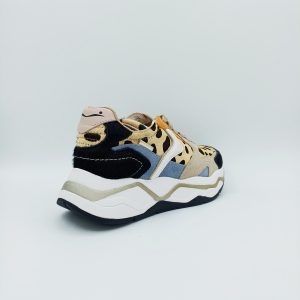 Sneaker especialmente cómoda de la marca VOILE BLANCHE con combinación de pieles en leopardo en tonos negros