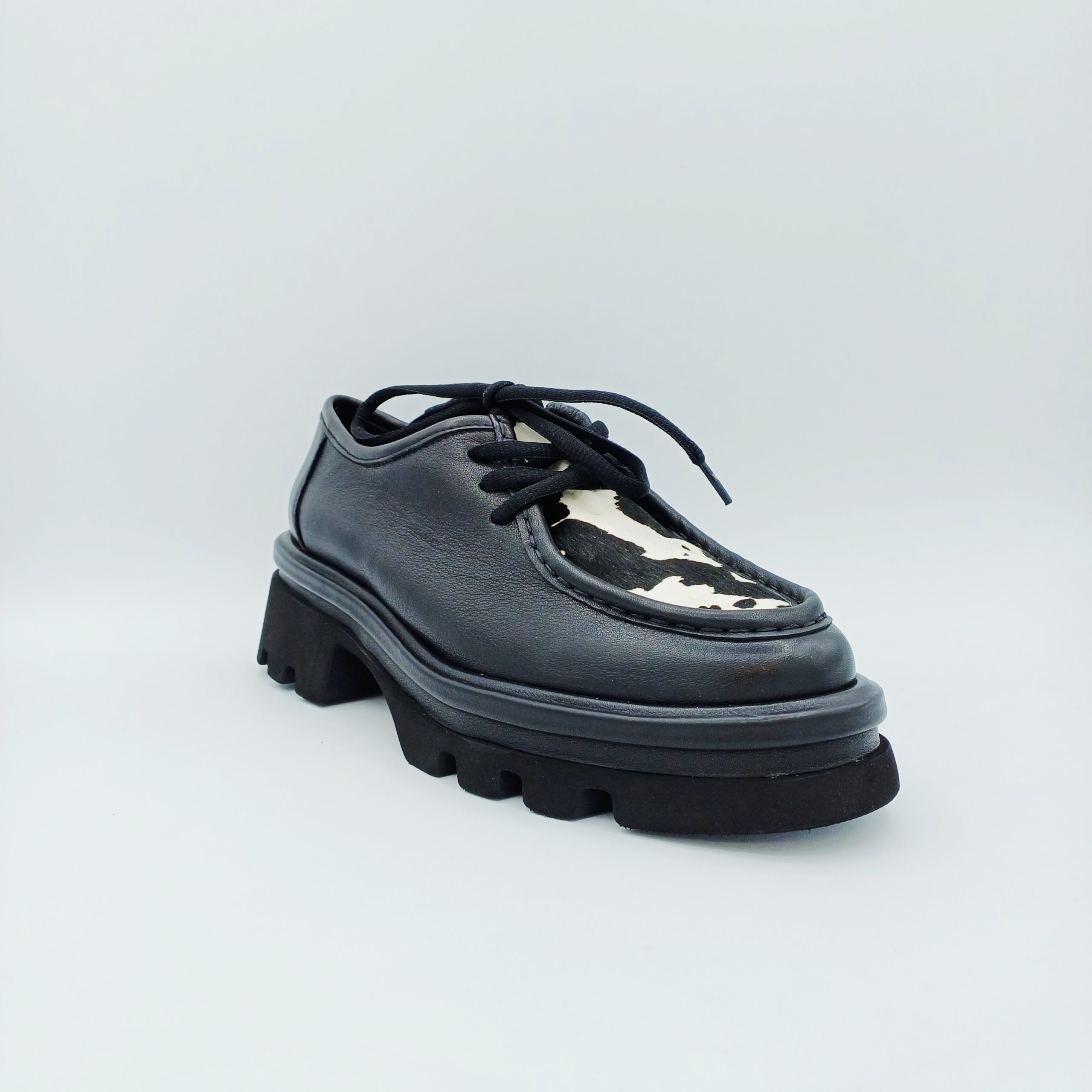 Mocasín en ante negro con pespuntes en piso de la marca Bruno Premi